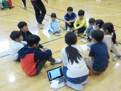 今日は、友だちグループの顔合せです。自己紹介をした後に、グループ名を覚え、最後は少しグループで遊びました。これから、様々な場面で一緒に活動していきます。1年間、楽しく過ごしていきましょう!!