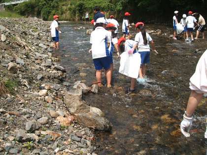 高野川を美しくするために,全校でゴミ0運動にとりくみました。「ともだちグループ」ごとに,協力してとりくみました。思ったより多くのゴミがあり,予想以上に多くのゴミを回収することができました。
