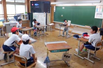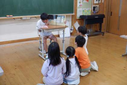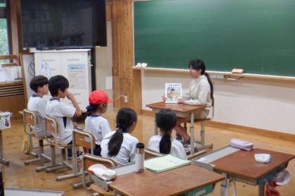 1学期の取り組みとして、全学年に読み聞かせをしました。聞き手の方に本を向けて読むのは難しいですが、さすが高学年!そしてさらに、登場人物になりきって読んでいました!