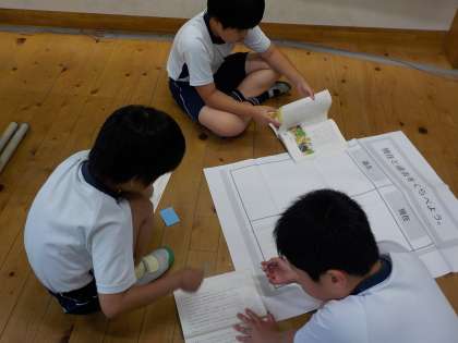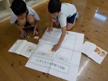 場面を比べながら、読み進めています。自分の気付きとはちがう友だちの気付きや同じ気付きを、たくさん話しながら学習を進めることができました。