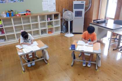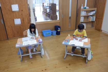 国語科「あいうえおで あそぼう」の学習で五十音について学習を進めました。本時ではひらがなの学習ということで、あいうえおからわをんまできれいな字でノートに書きました。ぐうぺたぴんの姿勢を保ち、マス目のお部屋を考えて、一生懸命書いています!