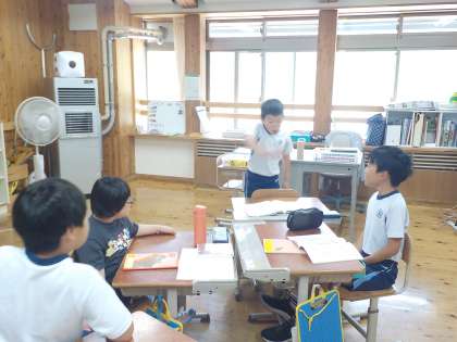 言葉の調子や感じたことを生かして、声に出して読みました。自然に動作もつけながら、全員が楽しみながら発表することができました。