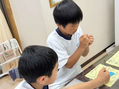 はさみの使い方や針に糸を通す練習をしました。