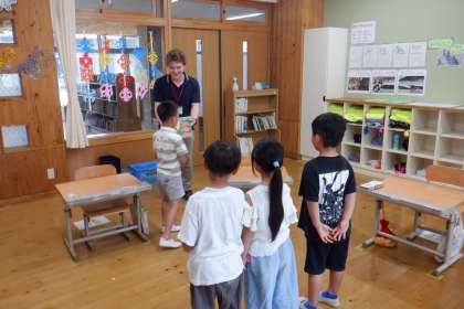 「大好きなイーサン先生と笑顔でバイバイしよう!」ということで沢山遊びました!ジェスチャーゲームやなんでもバスケットをして楽しみました!楽しく遊んだ後はそれぞれの学年からプレゼントを渡しました。少ない授業時数ではありましたが、優しいイーサン先生のことが大好きでした。新しい学校でも頑張ってください!私たちも頑張る!と言っている子どもたちの顔はキラキラしていました。本当にありがとう!!