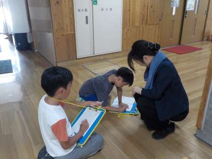 今年度新しく着任された先生のことをしょうかいするために頑張っています。メモも、上手にまとめながら書くことができるようになっています!
