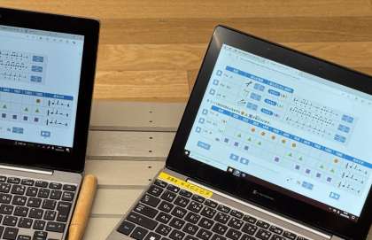 音楽科では2つのグループに分かれてリズムアンサンブルをしています。