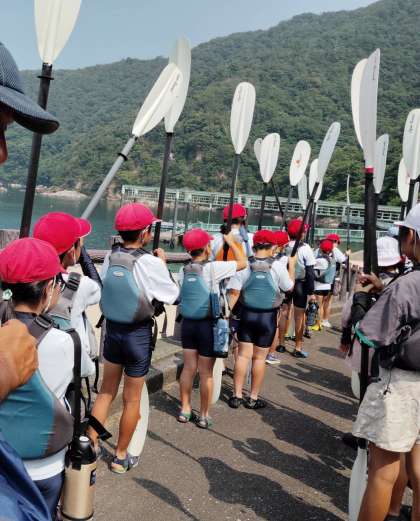 自然の家の方から乗り方や漕ぎ方を教えていただき、無事全員海に漕ぎ出せました!