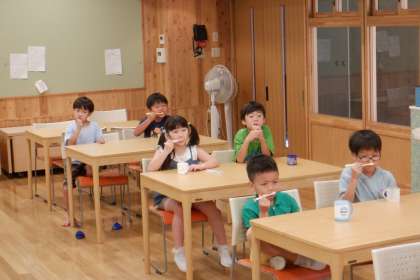 歯科衛生士の方に歯磨きの仕方についてお話を聞きました。歯の内側、外側、かみ合わせなど、磨き残しがないようにしっかり磨くことができました。歯についているたくさんのばい菌をやっつけるために、毎日歯磨き頑張りましょうね!