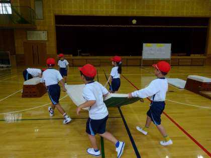 てきぱき準備を済ませ、時間いっぱいとびばこ遊びを楽しんでいます。