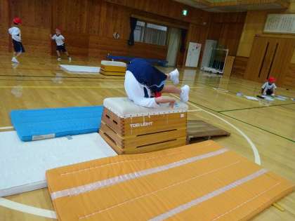 開脚とびや台上前転など、いろいろな技にどんどん挑戦する姿はとても頼もしいです。