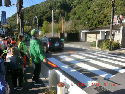 涼しくなってきました。皆様いつも見守りありがとうございます。最近は、交通安全だけでなく熊情報にも配慮しなければならないこの頃です。危機意識をもちつつ、登校指導していこうと思います。
