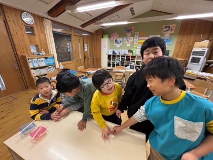 今月の友だちの日では、日本と外国の食文化のちがいについて知りました。日本とアメリカのカップ麺の麺の長さを確かめたり、タイ米を触ってみて普段食べている米との違いを確かめたりしました。