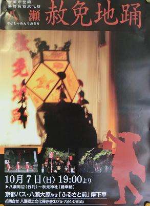 10月7日(日)夜7時から,八瀬秋元神社にて赦免地踊りが行われます。