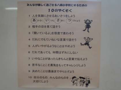 また今年度から,「みんなが楽しく過ごせる八瀬小学校にするための10のやくそく」をつくりました。