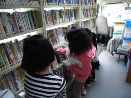 毎月一回,楽しい図書をいっぱいのせてやってきます。