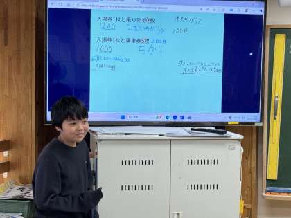 算数科では自分の考えをロイロノートにまとめて発表しました。