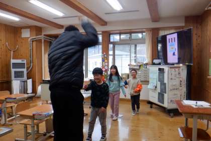 ライリー先生と2学期最後の学習でした。Ten Steps・カラータッチゲーム・じゃんけんをしました。みんな元気いっぱいです!!