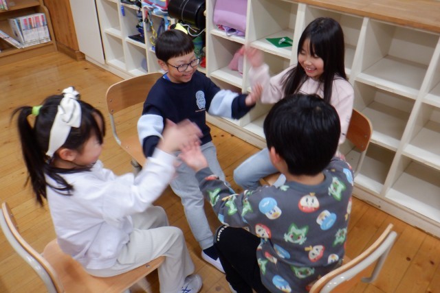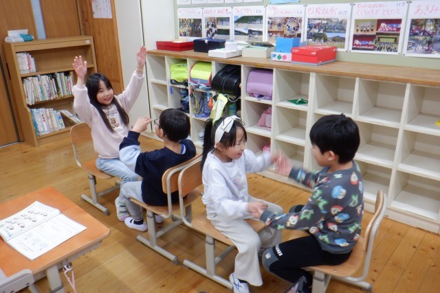 音楽科「にほんのうたを たのしもう」の学習で、わたべうたを楽しんでいます。本時は「おちゃらか ほい」で手遊びをしました。みんな元気いっぱいでした!