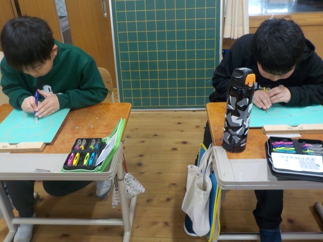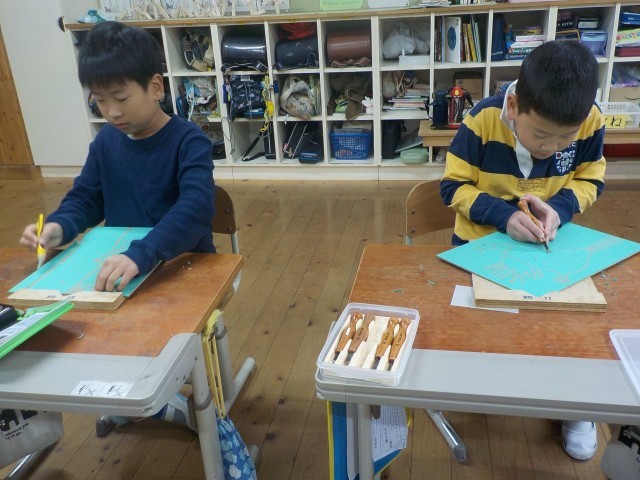 4年生は、初めて彫刻刀にチャレンジ!テーマは「動物」です。毛並みのほりかたを工夫したり目元のほりかたを工夫したりしながら、