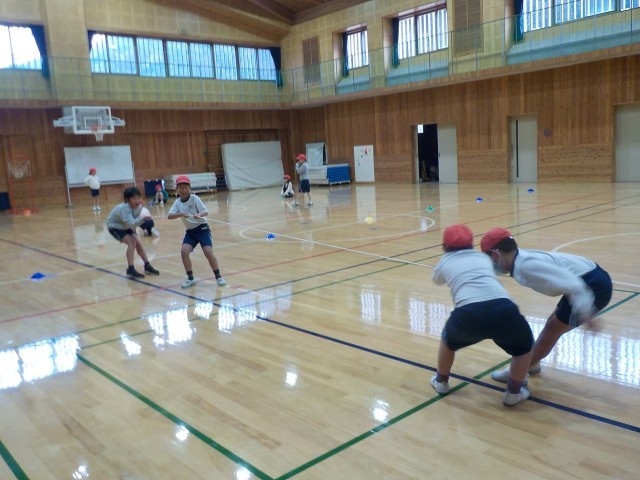 今日の体育は、学年別でした。相撲遊びをしたり、ドッジをしたりして、思い切り体を動かすことができました。