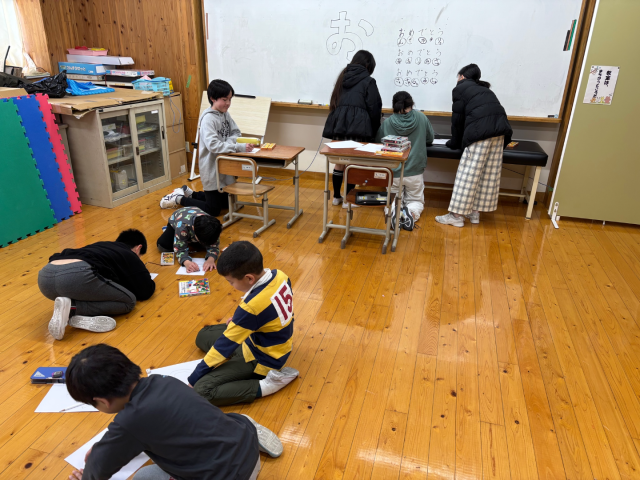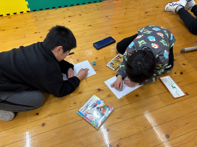 まもなく、卒業・入学シーズンをむかえます。中間休みに、子どもたちが「おめでとう」の気持ちをこめた掲示物を作成しています。