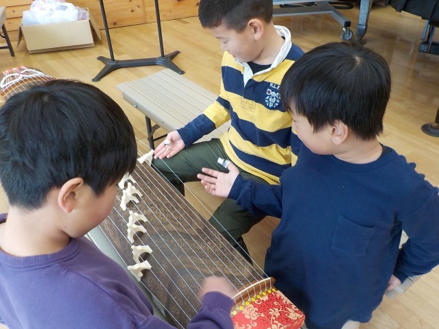 箏の音色の良さを味わいました。初めての箏に大興奮な子どもたち。じっくりと音色を味わうことができました。