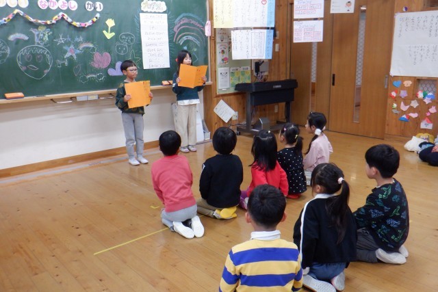 生活科「ようこそ、わたしたちの学校へ」で、来年度新1年生になる八瀬保育園の5歳児を招待し、「わくわくたのしいなかよしかい」をしました!1年生のみんなは、5歳児のみんながどうしたら楽しんでくれるか一生懸命準備をしてきたので、とてもワクワクしていました。八瀬保育園のみんなも目をキラキラさせて、入学を心待ちにしている様子が伺えました。小学校でのルールを教えたり、遊んだりして、思いっきり楽しみました!とても仲良くなった子どもたち。来年がとても楽しみですね!小学校の楽しさを伝えるためにたくさん考えた1年生、本当にありがとう!!