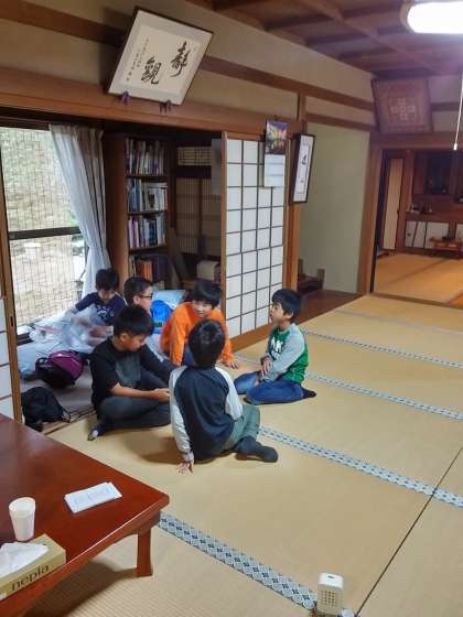 みんな元気に6時起床しました。声かけをし合いながら早く準備ができたのでゆっくり雑談しています。その後,止観指導(座禅)が始まりました。無になって数を数えます。 心が乱れると・・・担任の先生が見本を見せてくれました。