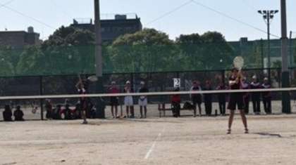 11月3日(金)に、ソフトテニス部女子の新人戦(初級の部)が行われました。台風による雨の影響で延期が続きましたが、今週は快晴のなかで試合が行われました。前週に1回戦を危なげなく勝利した7年生のAさんBさんペアは、2回戦で龍谷大学付属平安中学校と対戦し、4−2で勝利しました。あと1勝で府大会出場決定というところでしたが、このあと3回戦で樫原中学校のペアに1−4で惜しくも敗れ、敗者復活戦では大枝中学校のペアに善戦するも敗れてしまいました。