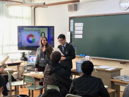 11月27日(月)6限目、9年生を対象に「ALT授業研修」を実施しました。これは京都市教育員会が、ALTの授業力向上を目指して毎年実施している取組です。今年度は京都大原学院で開催されることになり、十数名のALTの方が来校されました。授業では9年生一人ひとりとペアになり、英語で会話、9年生が相手のALTを英語で紹介するというものでした。本校は1年生から英語活動を取り入れ、外国人留学生との交流、ハワイ大学との交流、Do it in Ohara (英語で外国人に対し、大原の観光案内をする)の取組などを行い、9年生は様々な英語活動を経験してきました。この日の授業で9年生一人ひとりが見事にその英語力を披露してくれました。見学に来られた委員会の先生からは、「英語の力がしっかりついている。」とお褒めの言葉をいただきました。9年生からは「相手の話している英語の意味がほとんど理解できた。」「自分が伝えたいことが英語で表現できるようになった。」と楽しそうに語っていました。