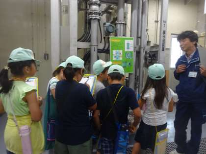 6月19日(火)4年生は大原第一浄水場へ社会見学に行きました。私たちが住む大原の水は大原第一浄水場と第二浄水場の2つの施設によって供給されています。職員さんの説明を聞きながら「大勢の人が働いているのかな。」「たくさんの機械があるのかな。」と考えを巡らせながら見学することができました。質問の時間には「何人くらいの職員さんが働いているのですか。」「機械は24時間休まず動いているのですか。」など,たくさんの質問が出ました。職員さんは「この大原第一浄水場は,普段は無人です。機械は24時間休まず動いていますが,その制御は遠くにある管理センターで行っています。管理に携わる職員の数は全体で40人ほどです。職員は交代で働いています。」など,みんなの質問に1つ1つていねいに答えてくださいました。また,浄水場には水の濁度を調べる機械があり,そこには大原を流れる高野川から取水した原水の濁度が表示されていました。高野川の原水は国が定めた基準よりもはるかにきれいであることが分かりました。「高野川の原水はとてもきれいだね。」「高野川の水がきれいだということは,大原の水がきれいだということだね。」という意見が聞こえました。見学の最後には「きれいな大原の水をいつまでも守っていくために,わたしたちができることは何かな。」とこれからの学習活動に向けて考えを深める姿も見られました。帰校後,さっそく4年生は大原第一浄水場についての新聞作りに取りかかりました。私たちが住む大原と深く関係する水の学習。きっと素晴らしい内容の新聞になると思います。このように校区での学習を通しても地域の特徴やよさを見つけ,地域への誇りと愛着を育んでいる学院生です。