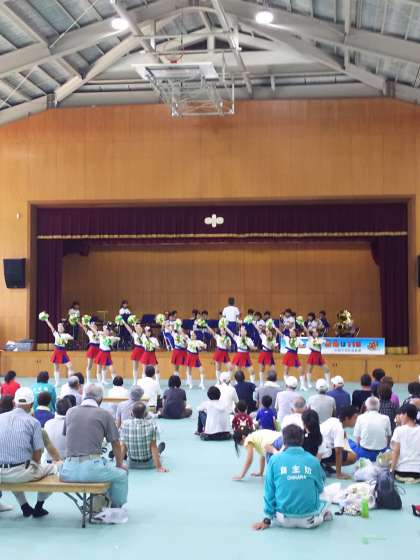 訓練の後半では京都外大西高等学校チアリーディング部の公演、京都市消防音楽隊の演奏があり、参加者全員で炊き出しによる非常食をいただきながら、すばらしい演技と演奏を観賞しました。このように地域全体での訓練を通して、防災への意識が高まった1日になりました。