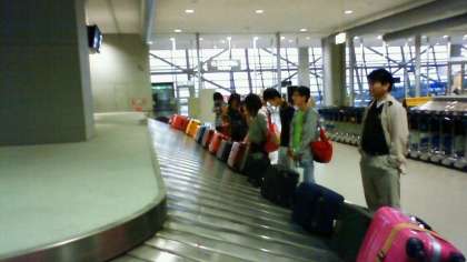 5月9日(月)〜11日(水)9年生が沖縄へ修学旅行へ出かけました。3日目,沖縄よりJAL2580便で関西空港に着きました。荷物を待っています。荷物を受け取った後,バスで大原にもどります。