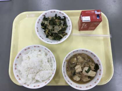 今日のご飯は京都市右京区京北地域で作られた「京北米」です。京北地域は大原と同じような環境で多くの木が育つ山があり,美しい川が流れる自然豊かな地域です。その京北地域で育った「京北米」を味わって食べました。大原学院では給食週間に「大原産米」を味わう計画です。お楽しみに。