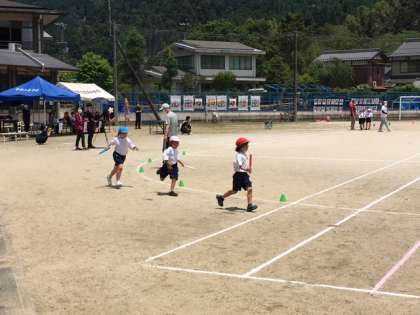 午前の部,最後の種目は「色別対抗リレー」です。1年生から9年生までバトンをつなぐ,京都大原学院ならではの種目です。これから給食をとり,午後から京炎そでふれを踊ります。