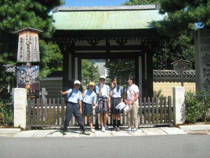 河原町五条で降りた五条グループは,子育飴のお店や八坂の塔を通り,建仁寺の前で記念写真を撮りました。いろいろな問題を解きながら,いろいろな人に尋ねながら歩いていきました。無事に高台寺に到着しました。途中,人力車や舞妓さんに会いました。