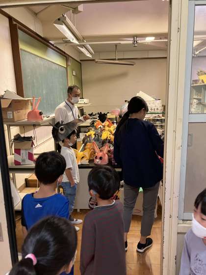 かぶりもののサイズ合せを行っています。いい表情をしていました。