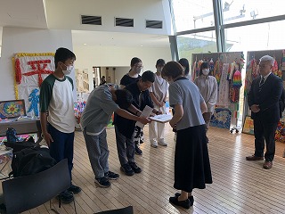 学院生に書いてもらった色紙は、9年生が責任を持って資料館の館長さんにお渡ししました。