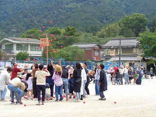 PTA種目「玉入れ」は、たくさんの参加があり、赤、白、青どの色も80個を超える球が入り接戦でした!ご協力ありがとうございました。