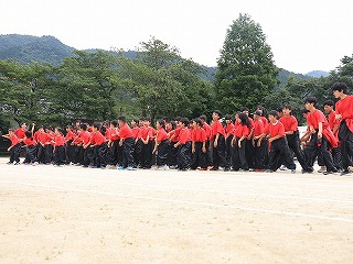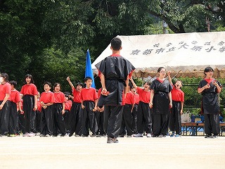 全校演技「京炎そでふれ」は、9年生が「ためて〜!」みんなが「解放!」と声を掛け合い、気合を入れてスタートしました。