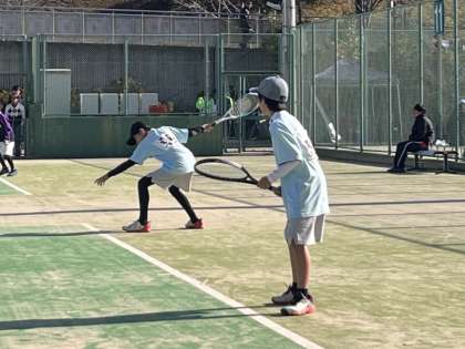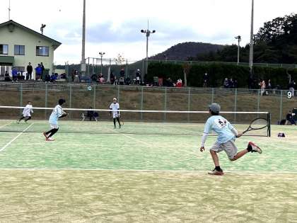 12月7日に、丹波自然運動公園でソフトテニスの1年生大会がありました。全市予選を突破した7年生ペアが出場しました。