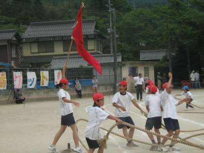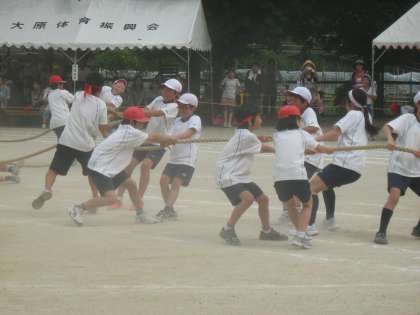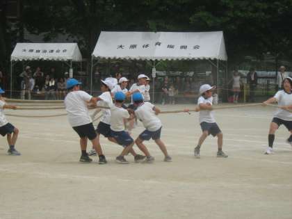 中期ブロックの一文字つなひきです。本校では初めての競技です。