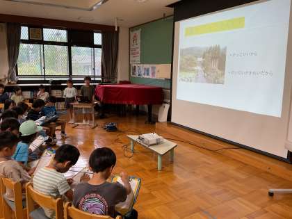 今回は2年生から、生活科で学習した「これであなたも大原はかせ ワクワク どきどき はらはら」の発表がありました。自分で作ったスライドを使いながら、一人一人が大きな声で発表しました。始めて知った場所やすごく景色のいい場所など様々な場所があり、大原を再発見できる時間でした。ブロック遊びでは、体育館で「こおりおに」をして遊ぶことができました!