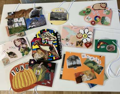 久しぶりのASAに初参加の一年生も迎え、まずはみんなの名前を使った遊びでウォームアップ。それからネームプレート作りをしました。じっくり選んで組み合わせた絵柄に、自分の名前の綴りを確認しながらアルファベットを切り貼りし、ラミネートして紐を通して、完成です。