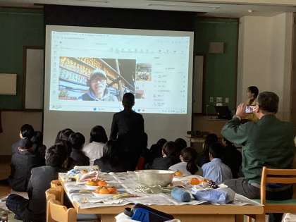山形県や干し柿についての話をパワーポイントで聞かせていただいた後、干し柿農家の方とオンラインで質疑応答させていただきました。干し柿は渋柿で作ることや渋柿が甘い干し柿になること、おいしい干し柿の見分け方などを教えていただきました。