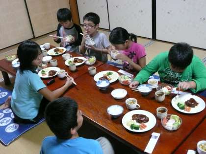 3日目の夕食は子どもたちの大好きなハンバーグでした。みんな大喜びでおいしくいただきました。
