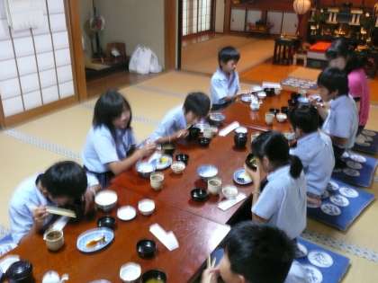 4日目の活動が始まりました。写真は朝食の様子です。今日は東山散策なのでうきうきしながら食事中の会話も弾んでいました。
