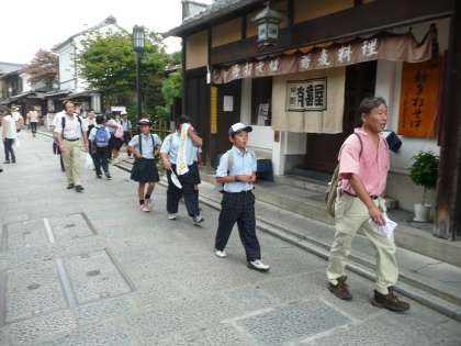 全部のグループが予定の時刻より早く高台寺公園に集合しました。昼食後,みんなで清水寺に向かいました。