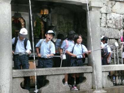 最後に清水寺に行きました。音羽の滝にもみんなで行列を作って並んでいました。
