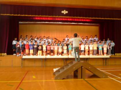 文化祭まで1週間あまりとなりました。各学年の舞台発表に向けての取組も進んでします。今日の4校時には体育館で全校合唱の練習がありました。文化祭は12日に行います。